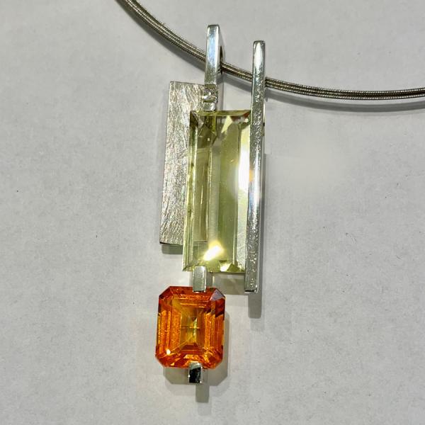 Anhänger 14 kt Weißgold, Lemon Quarz, Orange-Topas und Brillanten