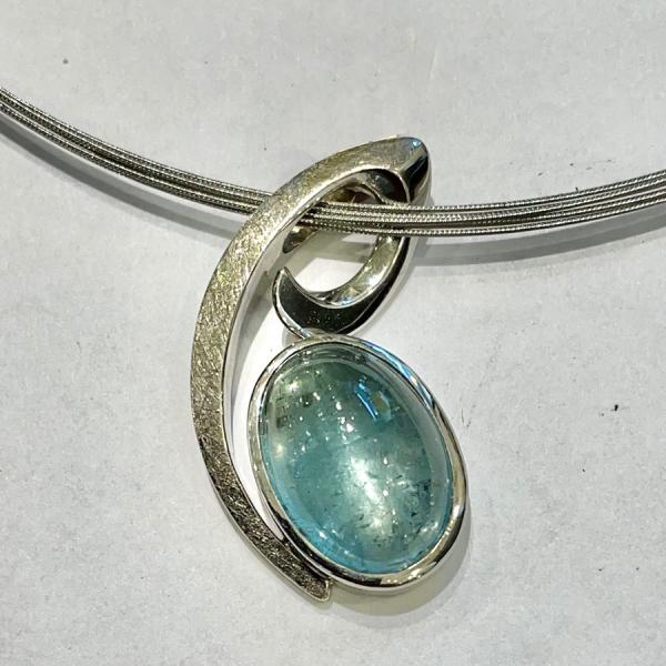 Anhänger 14 kt Weißgold mit einem ovalen Aquamarin - Cabochon